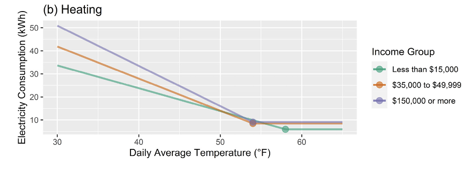 Huang and colleagues found low-income households frequently turn on heating units earlier in the winter than their higher-income counterparts (Figure 3). While this may seem counter to the assumption that low-income households are more apt to limit their heating due to financial constraints, the authors point to the substandard insulation and efficiency of many affordable housing options, which necessitate earlier and longer winter heating periods, as the likely cause.