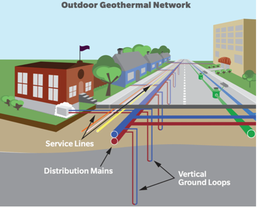 Meanwhile, a pilot project in Massachusetts is beginning to tackle the state’s leaky gas distribution system in lower-income neighborhoods by repurposing the rights-of-way to roll out geothermal heating and cooling districts. Under the pilot, three gas utilities will replace portions of the network with connected ground-source heat pump systems that harness thermal energy from the earth to heat and cool homes and businesses, as Figure 2 below shows.