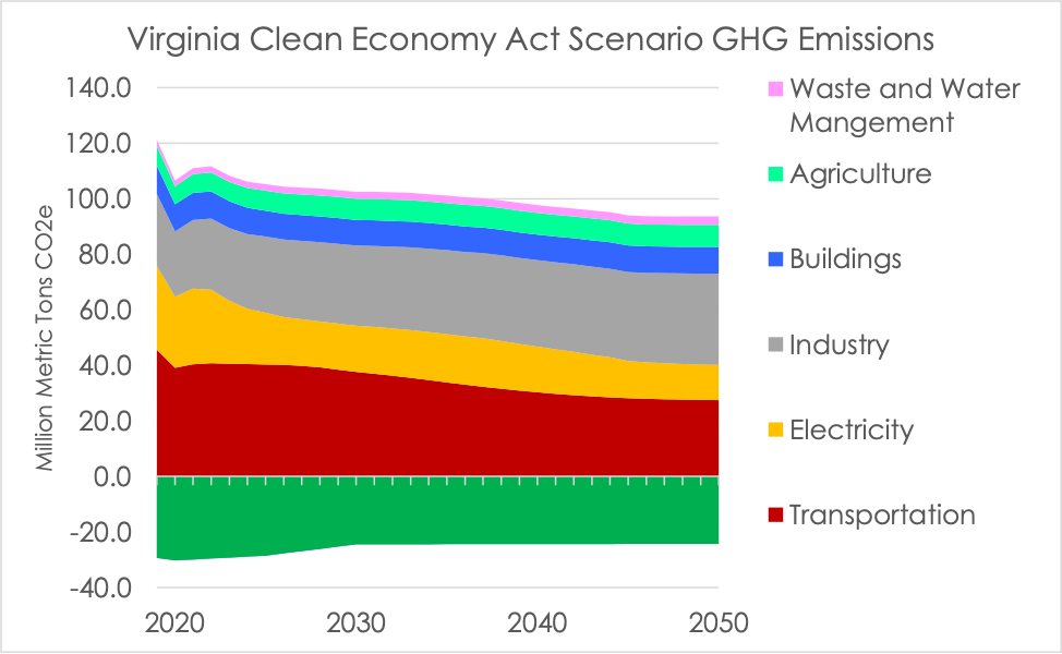 New modeling using the Virginia Energy Policy Simulator finds the Virginia Clean Economy Act will cut statewide emissions nearly 35 percent by 2050.